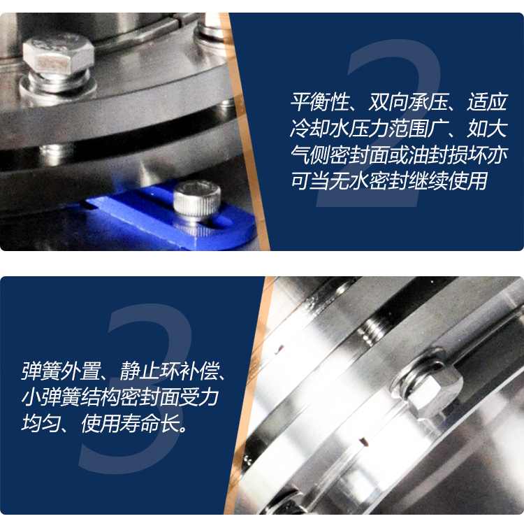 散装双端面、任意旋向、无需调整密封压缩量、共用弹簧、安装方便等